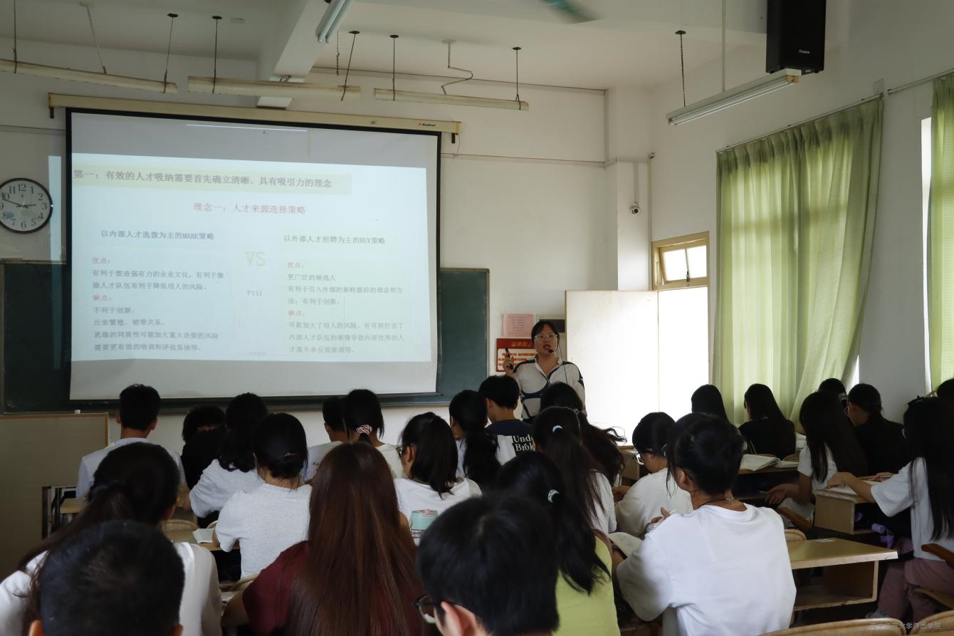 本次教学公开课由经管系专任教师石艳芳老师主讲,授课的章节内容为《人员招聘》。石艳芳老师在课上通过讲解国内外知名企业的招聘案例以及社会热点问题向同学们分析、讨论了企业用人和招聘的选择策略、方式方法等内容,引导学生理解课程的重点、难点,同时也启发学生掌握面试技巧和努力学习,提升个人综合素养,为未来赢得理想的工作岗位夯实基础。