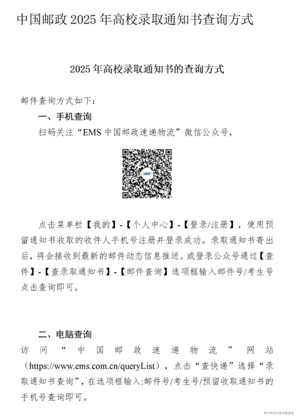 2025年新生录取通知书邮单查询方式