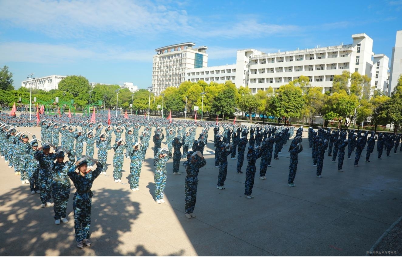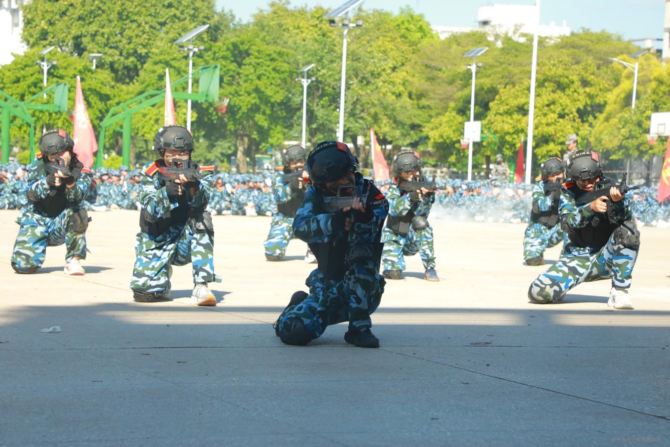 上午9时30分,在庄严肃穆的升旗仪式后,2025级新生身着迷彩服,以连队为单位依次进行汇报,接受主席台领导、师生检阅。他们以整齐的步伐踏出时代的节拍,用嘹亮的口号喊出内心的豪情。向在场的师生们展示了军训成果,展现出师园学子军训磨砺后绽放的青春光彩与昂扬向上的精神风貌。随后,表演方块队依次出场,捕俘刀方阵协调统一、利落干脆;刺杀操方阵气势磅礴、豪情壮志;手语方阵蓬勃向上、青春朝气;捕俘拳方阵英姿飒爽、自信昂扬;战术突击方阵锐不可当、雷霆万钧。他们以精彩表现赢得阵阵掌声和喝彩声。
