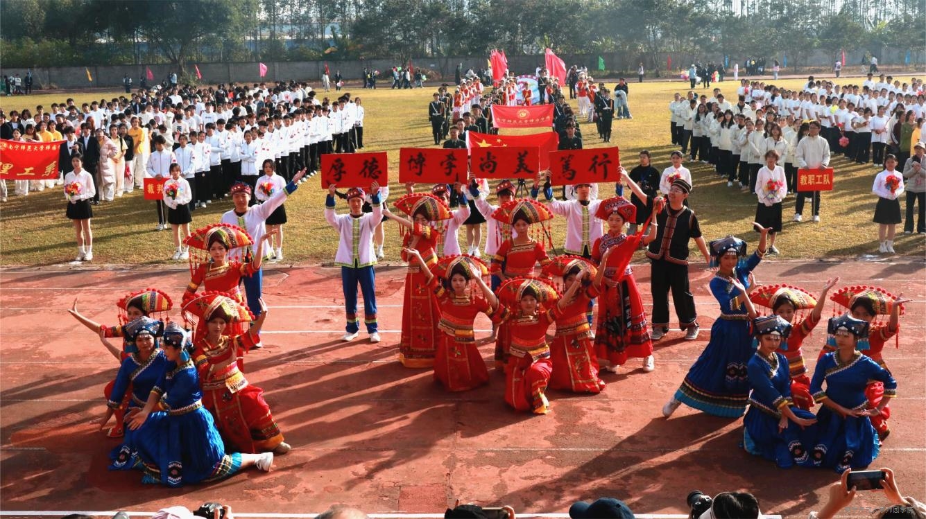 冬月盛会,号声嘹亮震九霄。上午9时,温暖阳光倾洒在田径场。《运动员进行曲》慷慨激昂、振奋人心。国旗队、校旗队踏着矫健有力的步伐,用坚毅的眼神,庄严护卫中华人民共和国国旗、beat365手机版官方网站校旗入场。随后鼓号队、鲜花会徽队、红旗队、裁判员代表队、教职工代表队及各系代表队依次入场,他们个个精神抖擞、喊着铿锵有力的口号,风华正茂的景象,生动展现了beat365师生的睿智儒雅、胸怀天下的精神品格。在文化展演环节,各系融合专业特色、传统文化底蕴和创新理念呈现了独具特色的表演,充分彰显了beat365学子的青春活力与无限创意。