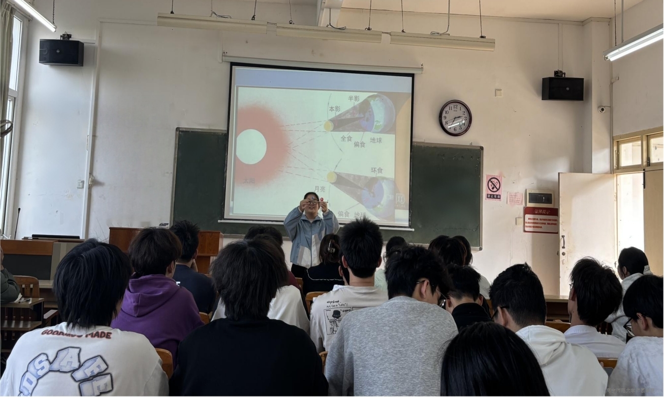 本次公开课由地理教研室谈思泳、姚瑶两位教师主讲。谈思泳老师以《地球科学概论》“日食和月食”为主题,通过图示动画解析日月食成因与类型,并指导学生动手制作天体模型,在实践中深化对相关概念的理解。她在教学中融入科学探索精神的阐述,引导学生从古人观天到现代预测的跨越中,感悟求真务实的科学态度。